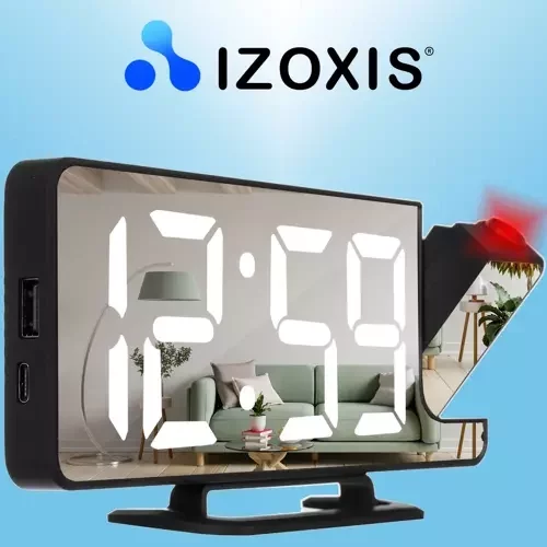 Wielofunkcyjne urządzenie 4w1 łączy zegar, budzik, lustro i projektor w jednym kompaktowym urządzeniu. Przednie lustro wyświetla czas i inne informacje, co jest praktyczne do szybkiego makijażu lub fryzury. Dzięki kompaktowym rozmiarom i niskiej wadze zegar łatwo przenosić i jest idealny na podróże lub do namiotu.