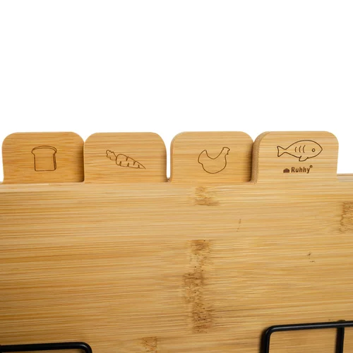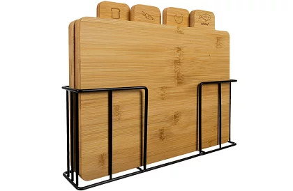 Ułatw sobie przygotowanie posiłków i zachowaj maksymalną higienę w kuchni dzięki praktycznemu zestawowi bambusowych desek z przejrzystym oznaczeniem. Każda deska jest przeznaczona do innego rodzaju żywności, co pomaga ograniczyć przenoszenie zapachów i bakterii. Naturalny materiał bambusowy jest odporny, szybko schnie i nie wchłania niepożądanych zapachów. Elegancki metalowy stojak zapewnia przejrzyste przechowywanie i oszczędza miejsce na blacie roboczym. Zestaw jest idealny nie tylko do krojenia, ale także do stylowego serwowania.
