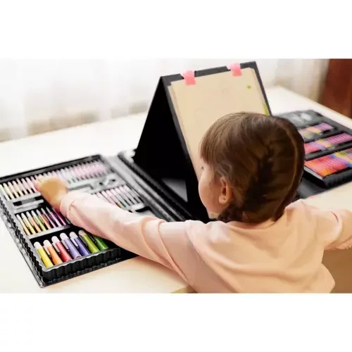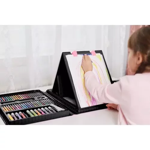 Bogaty zestaw artystyczny w praktycznej walizce oferuje wszystko, co dzieci potrzebują do rysowania, malowania i kreatywnej zabawy. Przejrzyste przegródki utrzymują wszystkie przybory na swoim miejscu w domu i w podróży. Dzięki bezpiecznym, nietoksycznym materiałom i przemyślanej konstrukcji zestaw nadaje się do codziennego użytku i wspiera rozwój wyobraźni, małej motoryki oraz radości z tworzenia. Idealny jako prezent, który zajmie na długie godziny.