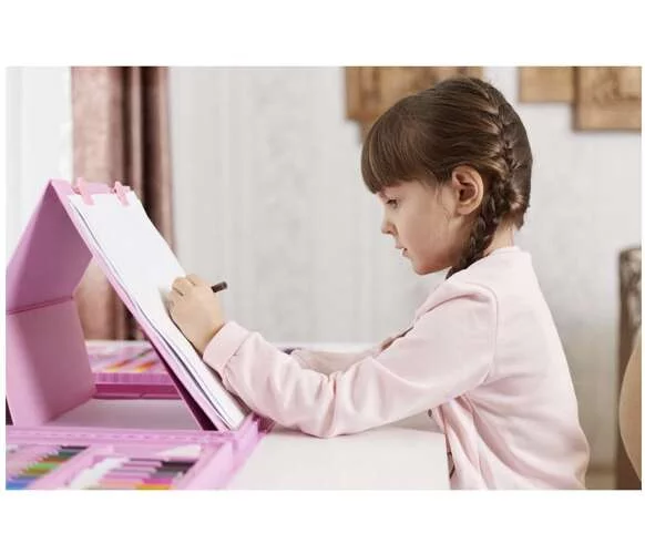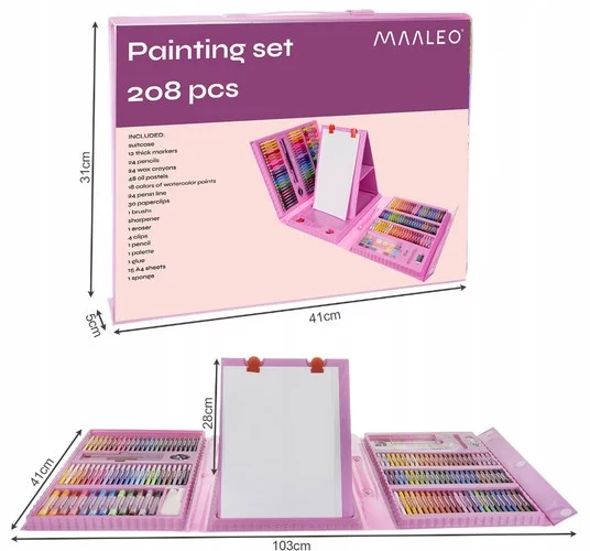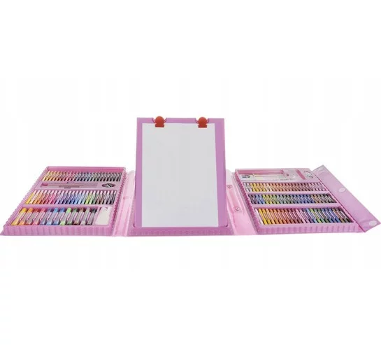 Duża kreatywna zestaw, który otworzy dzieciom świat fantazji, kolorów i twórczości. Praktyczna walizka z przemyślanymi przegródkami utrzyma wszystkie przybory w porządku zarówno w domu, jak i w podróży. Dzięki bogatej zawartości dzieci mogą rysować, malować i tworzyć razem, rozwijając motorykę małą, kreatywność i koncentrację. Idealny wybór na długie godziny zabawy oraz jako udany prezent.