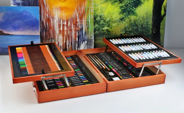 Odkryj świat kreatywności i sztuki z zestawem artystycznym zawierającym 177 elementów do malowania i rysowania. Drewniana walizka z mocnymi zapięciami trzyma wszystko razem, dzięki czemu zestaw nie uszkodzi się nawet podczas transportu i jest idealny do użytku w domu i w podróży. Zestaw jest odpowiedni dla młodszych i starszych dzieci, a także dla dorosłych, którzy chcą rozwijać swój talent i kreatywność. Eleganckie drewniane etui zapewnia, że każdy element ma swoje miejsce, a także umożliwia łatwy przegląd i szybki dostęp do farb, kredek czy pędzli.