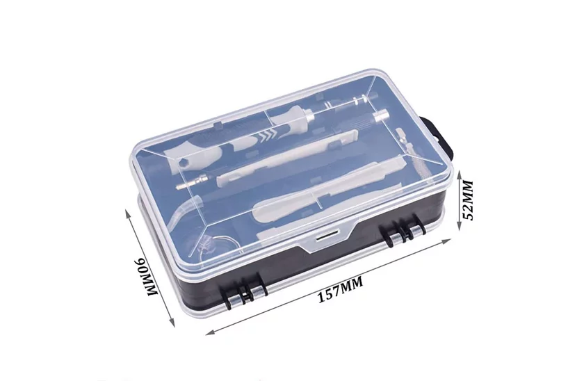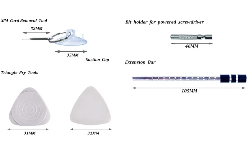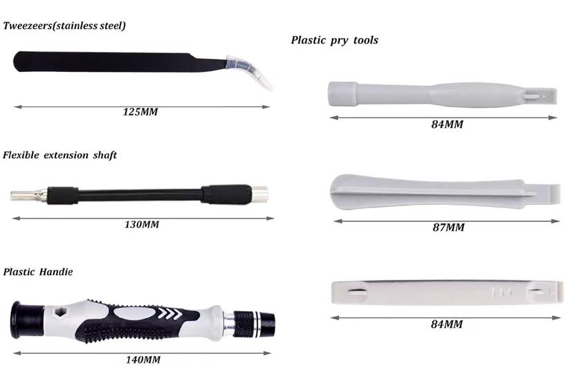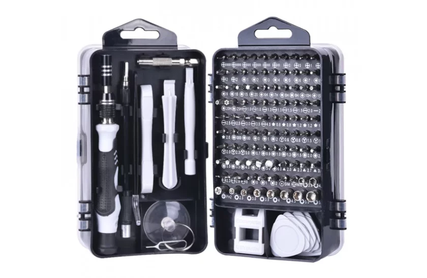Zestaw zawiera wszystkie akcesoria i niezbędne narzędzia do naprawy nie tylko telefonów komórkowych.