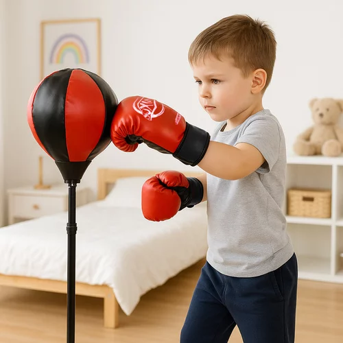 Bokserski zestaw wspiera aktywność fizyczną, refleksy i koordynację ruchową dziecka, umożliwia bezpieczne wyładowanie energii i rozwija pewność siebie poprzez sportową zabawę. Regulowana wysokość pozwala rosnąć razem z dzieckiem, dzięki czemu mogą z niej korzystać dzieci trzyletnie i starsze, a gruszka oferuje dynamiczny trening dzięki sprężynie, która po każdym uderzeniu wraca do pozycji pionowej.
