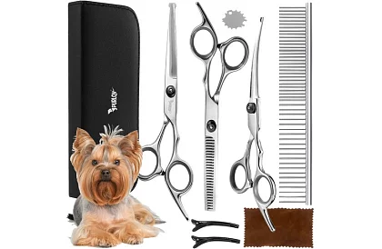 Perfektny narzędzie do domowej i profesjonalnej pielęgnacji sierści psa. Zestaw umożliwia bezpieczne i precyzyjne przycinanie sierści pupila, utrzymując ją zdrową, miękką i atrakcyjną. Ergonomiczne nożyczki z antypoślizgową rączką i zaokrąglonymi końcami chronią wrażliwe miejsca, takie jak oczy i uszy, oraz zapewniają wygodne trzymanie podczas strzyżenia. Zamknięte etui zapewnia przejrzyste przechowywanie i łatwą obsługę.