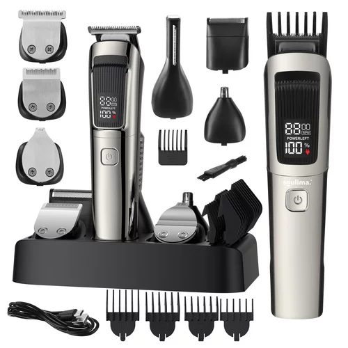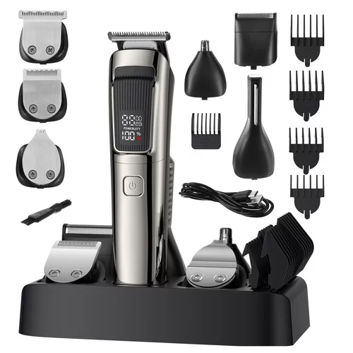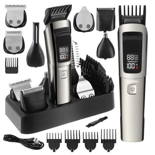Wielofunkcyjny trymer 8 w 1 umożliwia kompleksową pielęgnację włosów, brody i ciała za pomocą jednego urządzenia. Dzięki zestawowi wymiennych końcówek i nasadek radzi sobie z szybkim strzyżeniem, precyzyjnym modelowaniem i gładkim goleniem bez nieprzyjemnego ciągnięcia. Samostrzelające ostrza zapewniają równomierne cięcie i długą żywotność. Praktyczny wyświetlacz cyfrowy pokazuje stan baterii, a nowoczesne ładowanie USB-C umożliwia wygodne ładowanie w domu i w podróży. Wodoodporność IPX6 dodatkowo ułatwia konserwację, ponieważ końcówki można po użyciu po prostu przepłukać pod bieżącą wodą.