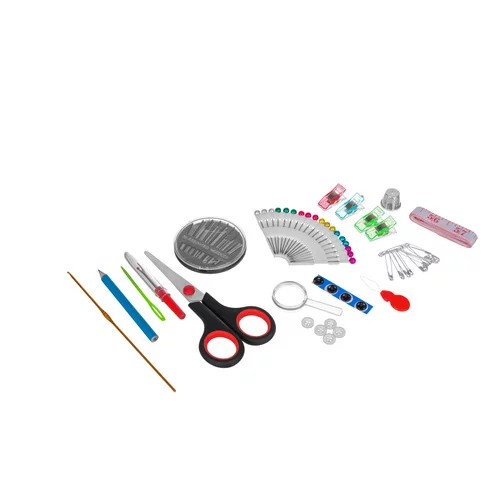 • Praktyczne akcesoria – zawiera nożyczki, miarę, igły i nawlekacz
