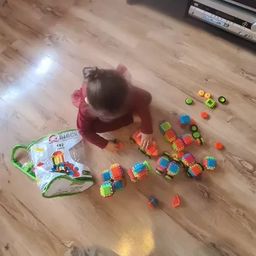 Zestaw 192 klocków w kształcie jeża wspiera kreatywność, wyobraźnię przestrzenną oraz umiejętności motoryczne dziecka. Dzięki różnorodnym kształtom i kolorowemu wykonaniu można tworzyć nieskończone struktury – od domów i pojazdów po stacje kosmiczne. Klocki są bezpieczne, ich zaokrąglone końce nie zagrażają małym palcom i umożliwiają łatwe łączenie dzięki charakterystycznym wypustkom.