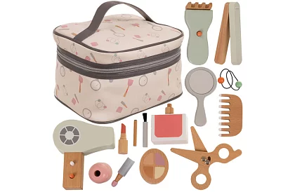 Połączenie kreatywności, zabawy i nauki w bezpiecznym drewnianym zestawie dla małych stylistów i wizażystów rozwija wyobraźnię, małą motorykę i pewność siebie. Kompletny zestaw – suszarka, grzebień, lakier do paznokci, szminka, paleta cieni do powiek i inne – umożliwia odtwarzanie realistycznych scenek ze świata piękna i jednocześnie wspiera rozwój koordynacji i umiejętności społecznych. Praktyczna kosmetyczka zapewnia łatwe przechowywanie i przenoszenie w podróży lub do przedszkola.