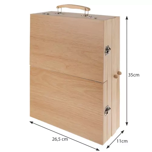 • Praktyczna drewniana walizka ze sztalugą do wygodnego transportu i przechowywania