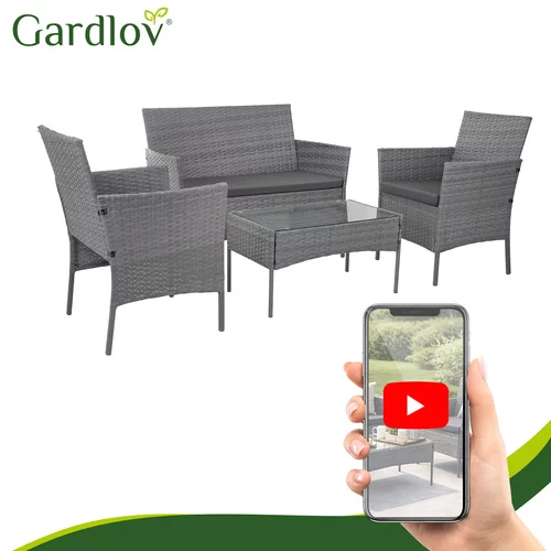 Elegancka zestaw mebli ogrodowych z technorattanu tworzy wygodne miejsce do relaksu na tarasie, balkonie lub w ogrodzie. Połączenie ocynkowanej stalowej konstrukcji, odpornego technorattanu i miękkich poduszek zapewnia komfort i długą żywotność przy użytkowaniu na zewnątrz. Stylowy stolik kawowy ze szklanym blatem oferuje praktyczną przestrzeń na napoje lub drobne przekąski. Nowoczesny ciemnoszary design łatwo wpasowuje się w różne przestrzenie zewnętrzne i pomoże stworzyć przyjemny kącik relaksacyjny dla rodziny i przyjaciół.