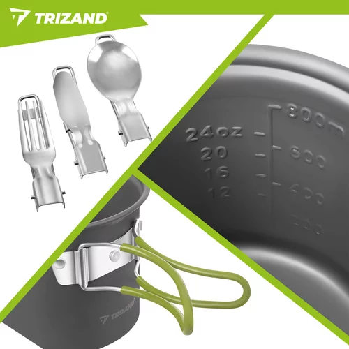 • Sztućce: składany nóż, widelec i łyżka ze stali nierdzewnej, bezpieczne i trwałe