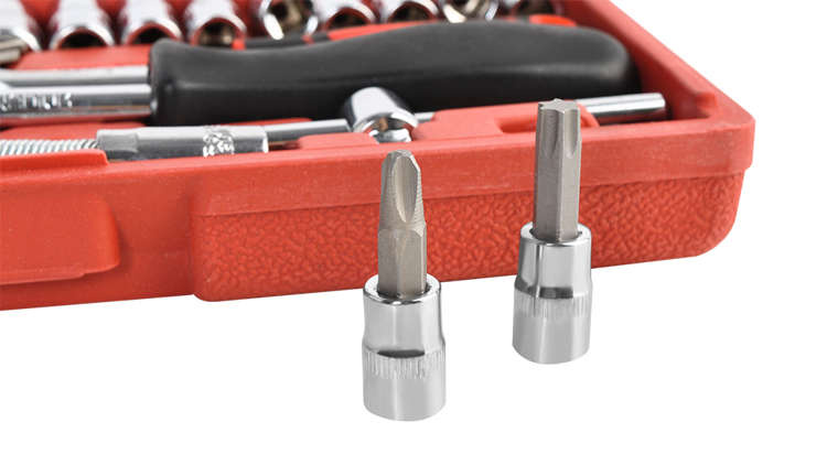 Wysokiej jakości zestaw narzędzi ze stali chromowo-wanadowej zapewnia długą żywotność i odporność na korozję. Każdy element został zaprojektowany do precyzyjnego dokręcania i demontażu śrub, co zwiększa efektywność pracy i bezpieczeństwo podczas użytkowania. Praktyczna walizka z wyciętymi przegródkami utrzymuje wszystkie elementy w przejrzystym porządku, łatwo dostępnymi i chroni je przed zgubieniem.