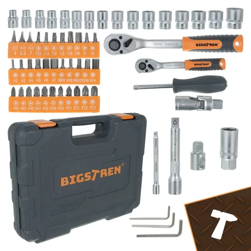 Kompletny 72-elementowy zestaw narzędzi Bigstreen oferuje szeroki wybór kluczy nasadowych, bitów, przedłużek i narzędzi ręcznych, które umożliwiają precyzyjną i wygodną pracę przy naprawach domowych, montażu mebli, konserwacji samochodów i ogrodnictwie. Mechanizm zapadkowy 72T zapewnia płynny ruch i wysoką precyzję, podczas gdy praktyczna walizka umożliwia szybki dostęp do narzędzi i ich bezpieczny transport. Zestaw wykonany jest z wytrzymałej stali chromowo-wanadowej, co gwarantuje długą żywotność i niezawodność przy każdym użyciu.