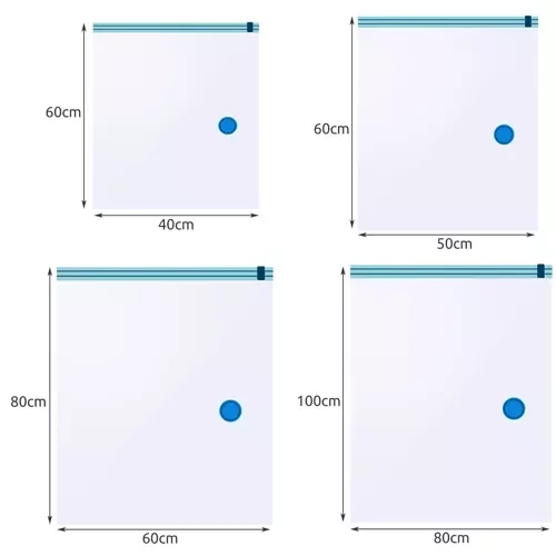 Oszczędność przestrzeni jest prosta z praktycznymi workami próżniowymi. Po odessaniu powietrza zwykłym odkurzaczem objętość worka zmniejsza się o 80 %, co pozwala zaoszczędzić miejsce podczas przechowywania odzieży, pościeli lub innych tkanin. Worki jednocześnie doskonale chronią zawartość przed kurzem, brudem, wilgocią i molami, dzięki czemu odzież pozostaje świeża i pachnąca nawet przy długoterminowym przechowywaniu. Worki są wielokrotnego użytku i zachowują swoje właściwości nawet po wielokrotnym użyciu.