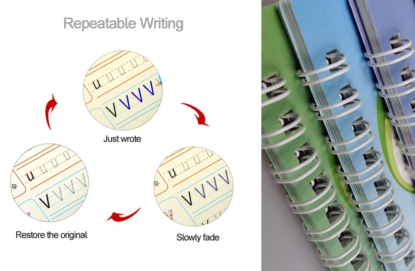 4-częściowy zestaw zeszytów ćwiczeń do pisania i rysowania za pomocą magicznego długopisu, który po chwili jest automatycznie usuwany. Dzięki temu magicznemu zestawowi zeszytów ćwiczeń Twoje dzieci mogą kilkakrotnie ćwiczyć pisanie i rysowanie! Zestaw przeznaczony jest do ćwiczenia alfabetu, cyferek, rysowania i matematyki, dostarczając jednocześnie innych ciekawych informacji i zabawnych wyzwań.