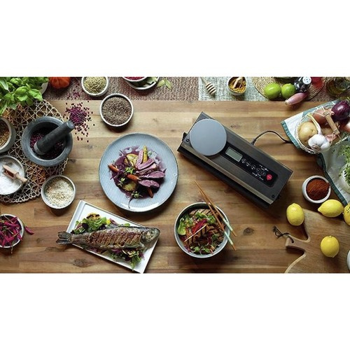 Praktyczna zgrzewarka próżniowa zapewnia, że warzywa, owoce, mięso, ryby, wędliny i produkty mleczne pozostaną dłużej świeże i nie stracą smaku ani zapachu. Dzięki wbudowanej wadze możesz porcjować jedzenie jeszcze przed zapakowaniem. Prosta obsługa zapewnia łatwe użytkowanie bez specjalnych umiejętności, a wielofunkcyjne tryby umożliwiają pakowanie produktów suchych i mokrych, uszczelnianie torebek, ustawianie prędkości, marynowanie i zamykanie butelek.